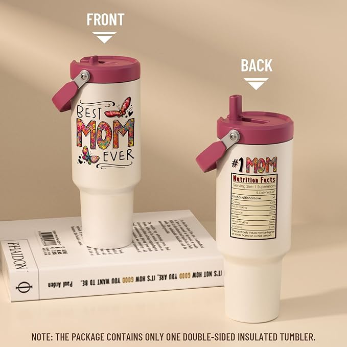 Gifts for Mom, Mothers Day Gifts from Daughter or Son, Mom Gifts - Happy Birthday, Christmas, Mother's Day Gift - 40 oz Tumbler with Handle and Straw (Butterfly)